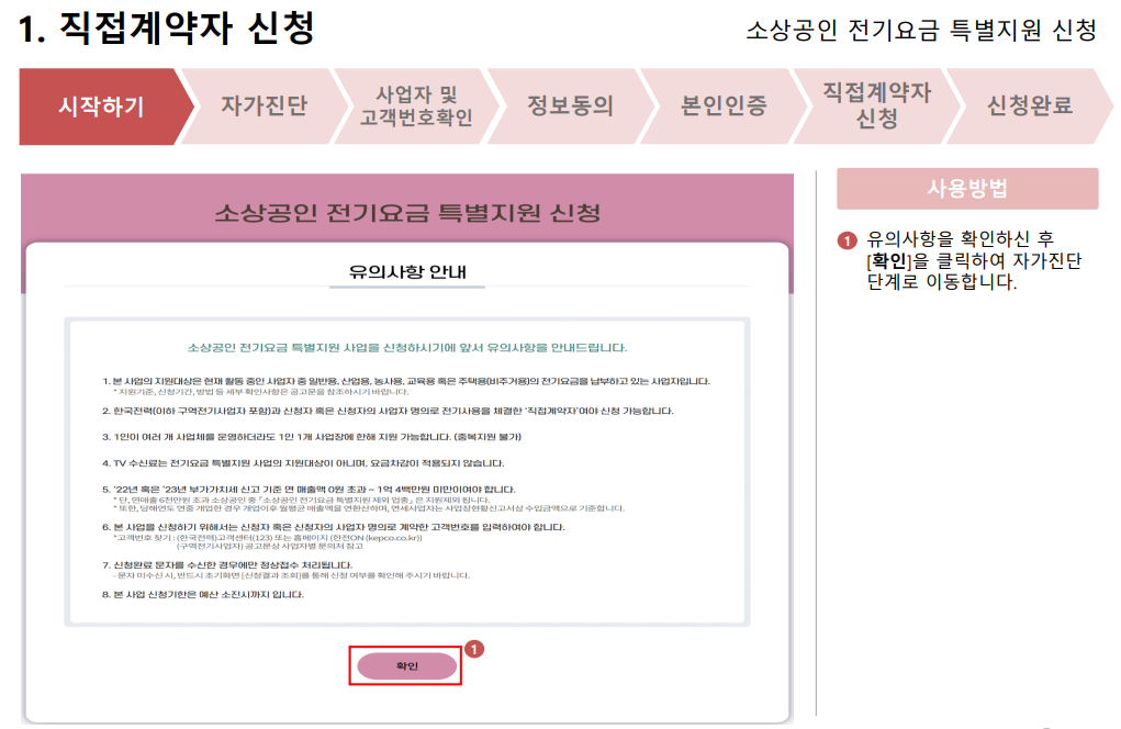 소상공인 전기요금 특별지원 신청 매뉴얼